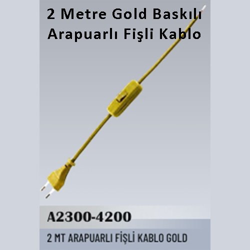 2 Metre Gold Baskılı Arapuarlı Fişli Kablo