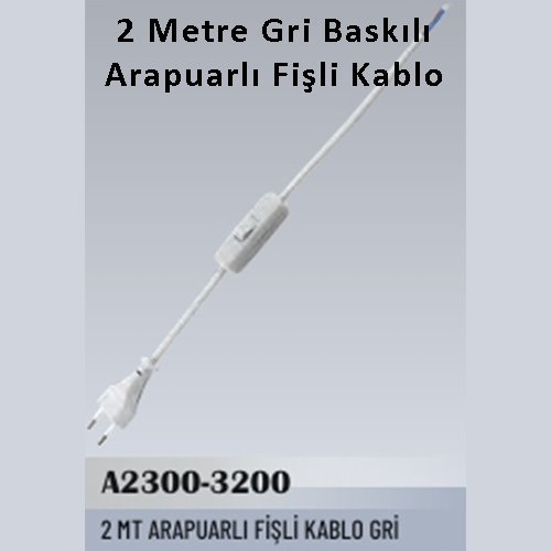2 Metre Gri Baskılı Arapuarlı Fişli Kablo