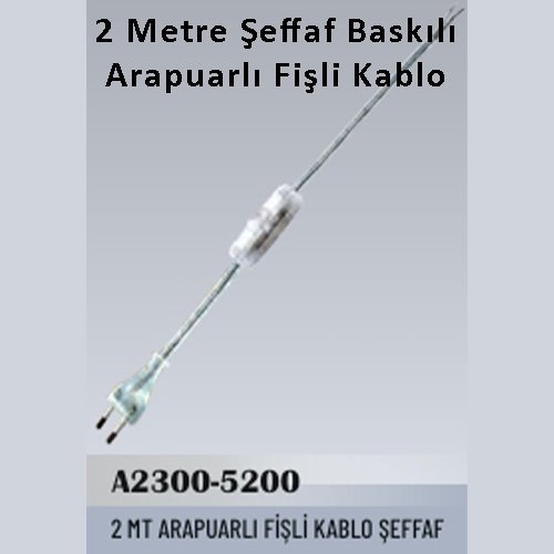 2 Metre Şeffaf Baskılı Arapuarlı Fişli Kablo
