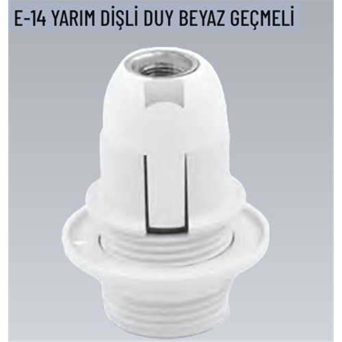E14 Yarım Dişli Geçmeli Beyaz Duy