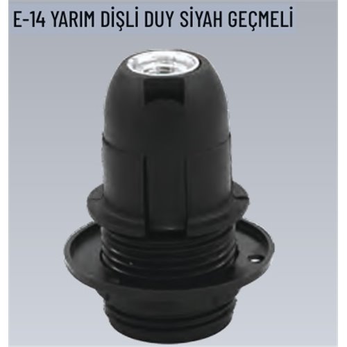 E14 Yarım Dişli Geçmeli Siyah Duy